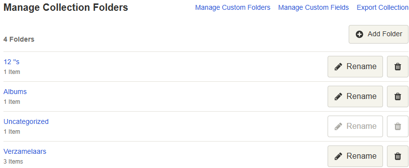In Discogs kun je folders aanmaken om de Discogs-releases te beheren; zie onderstaande afbeelding: